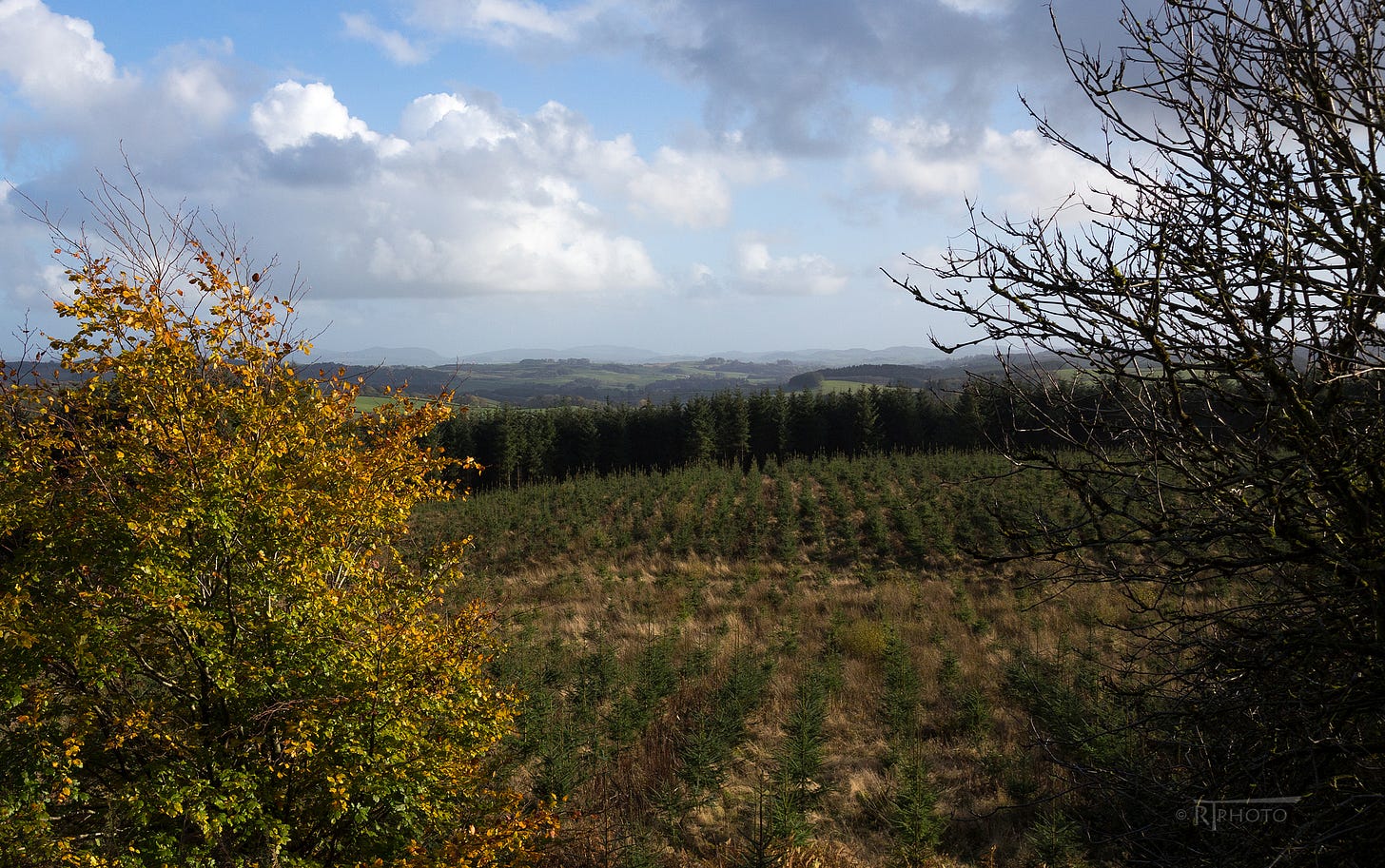 The beautiful calm before the storm. Autumn’s great flourish, seen whilst out for a stroll up our lane and‘round the block’ on the Fell, prior to Storm Ashley’s battering.