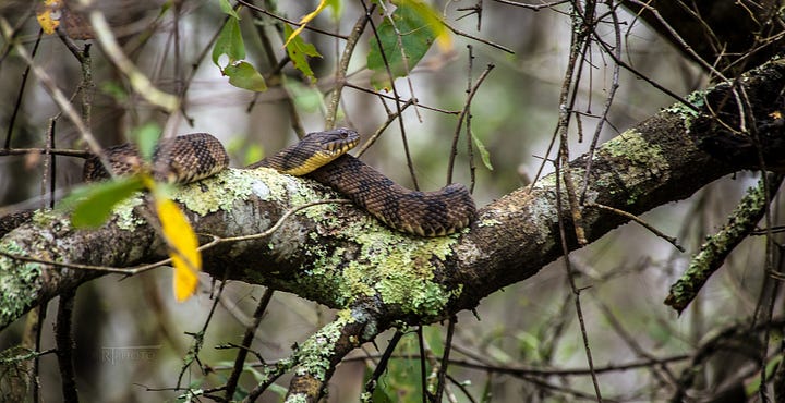 Our tour guide mentioned at the outset that sightings of alligators would be potentially a little hit and miss, as they don't deliberately bait the waters, preferring to let Nature take her course (the main reason we chose this particular company). We were, nonetheless, fortunate in gaining two or three good views of these toothy residents. Our luck didn't stop there. We also spotted snakes, turtles, birds of prey and herons.